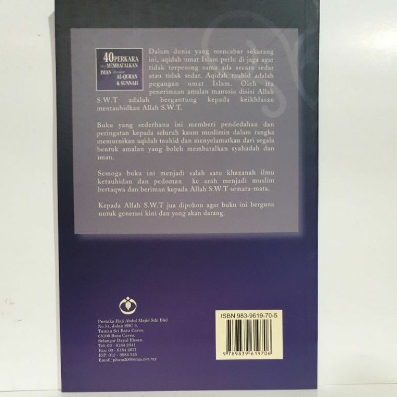 Buku 40 Perkara Yang Membatalkan Iman Shopee Malaysia