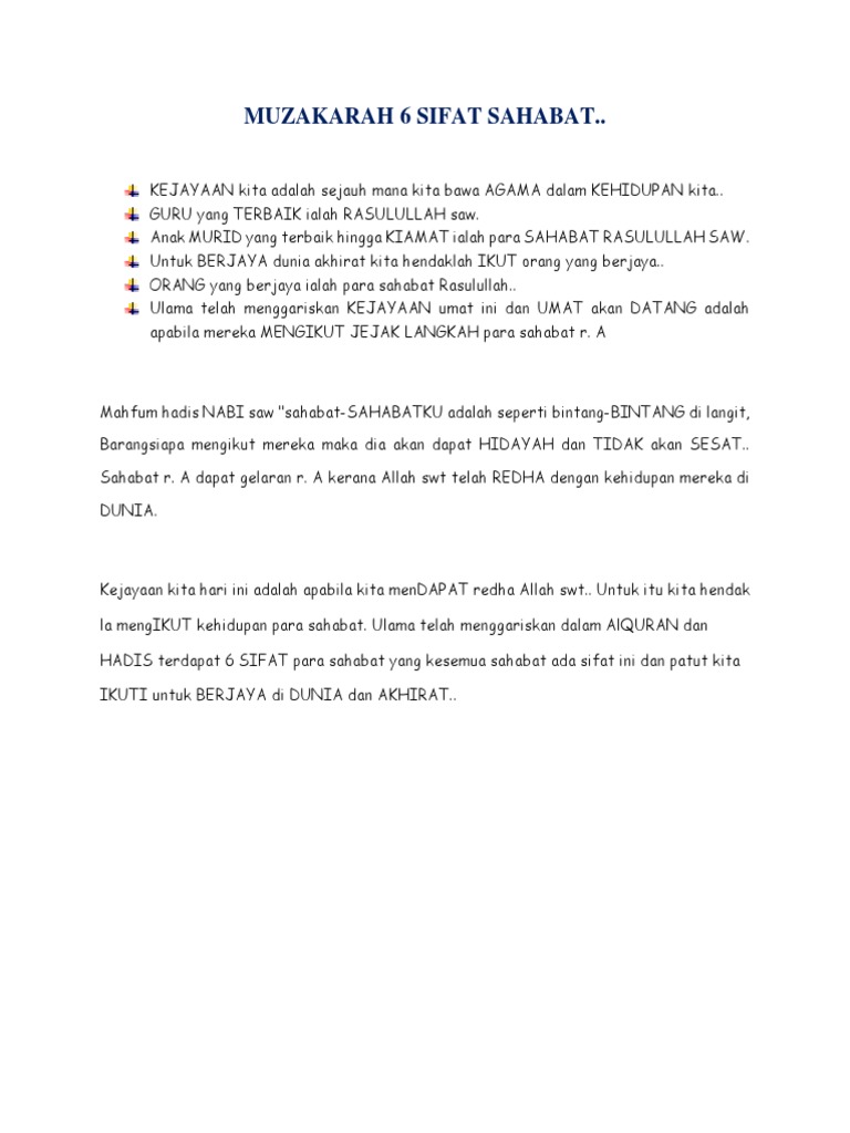 Doc Muzakarah 6 Sifat Sahabat Muaz Nahar Academia Edu