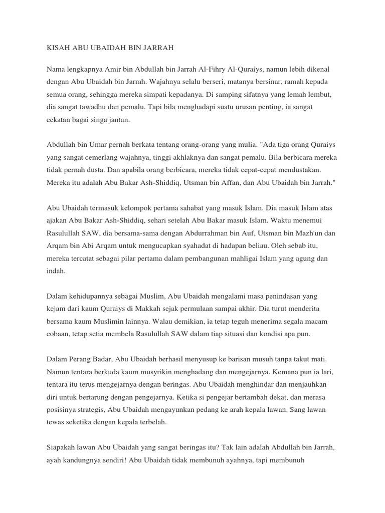 Doc Menjadi Salah Seorang Kepercayaan Nabi Biografi Ringkas Abu Ubaidah Bin Al Jarrah Rimbun Natamarga Academia Edu
