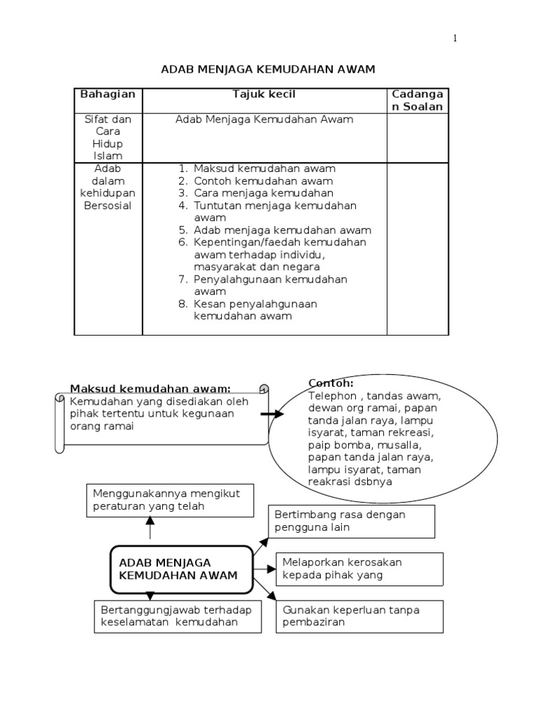 Maksud Kemudahan Awam Contoh Adab Menjaga Kemudahan Awam Bahagian Tajuk Kecil Cadangan