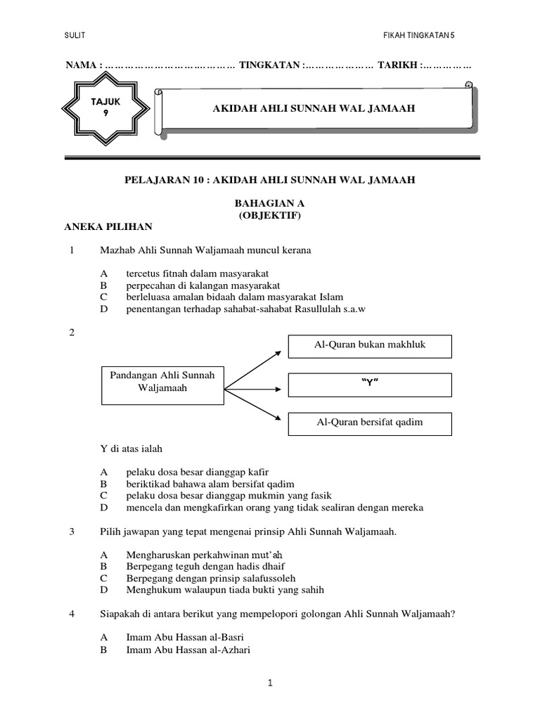 Soalan Akidah K1 T5 Akidah Ahli Sunnah Wal Jamaah