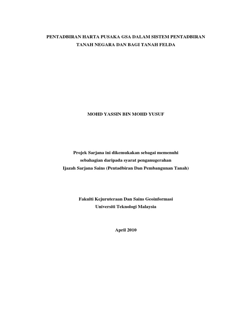 Pdf Pembahagian Harta Pusaka Felda Perspektif Masyarakat Islam Felda Taib Andak