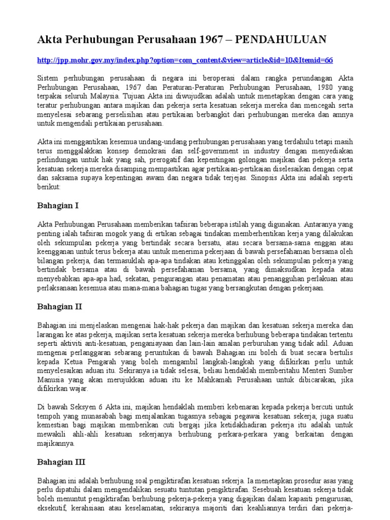 Pdf Akta Perhubungan Perusahaan 1967 Ira Muhd Hafiz Patolga Academia Edu