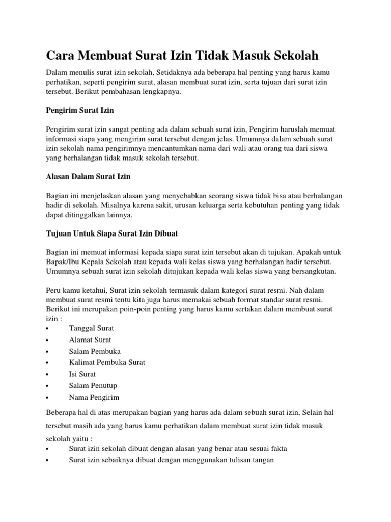 Cara Membuat Surat Izin Tidak Masuk Sekolah