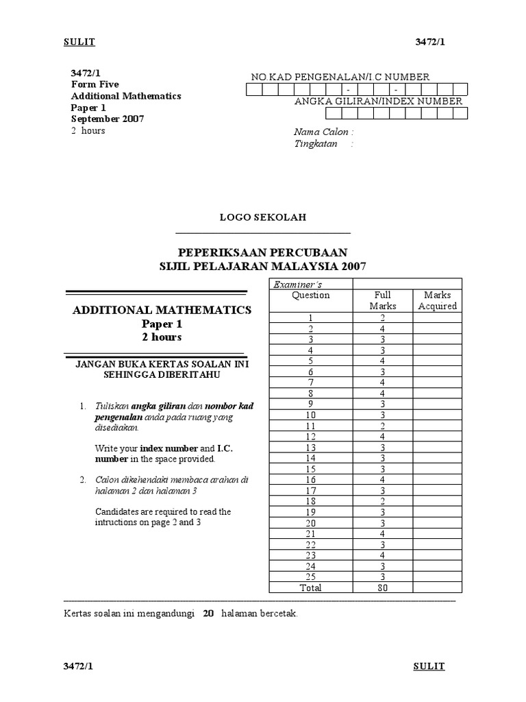 Kupdf Net Additional Mathematics Spm Paper 1 2018