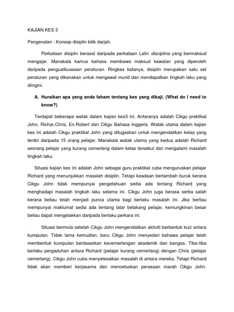 A Huraikan Apa Yang Anda Faham Tentang Kes Yang Dikaji What Do I Need To Know