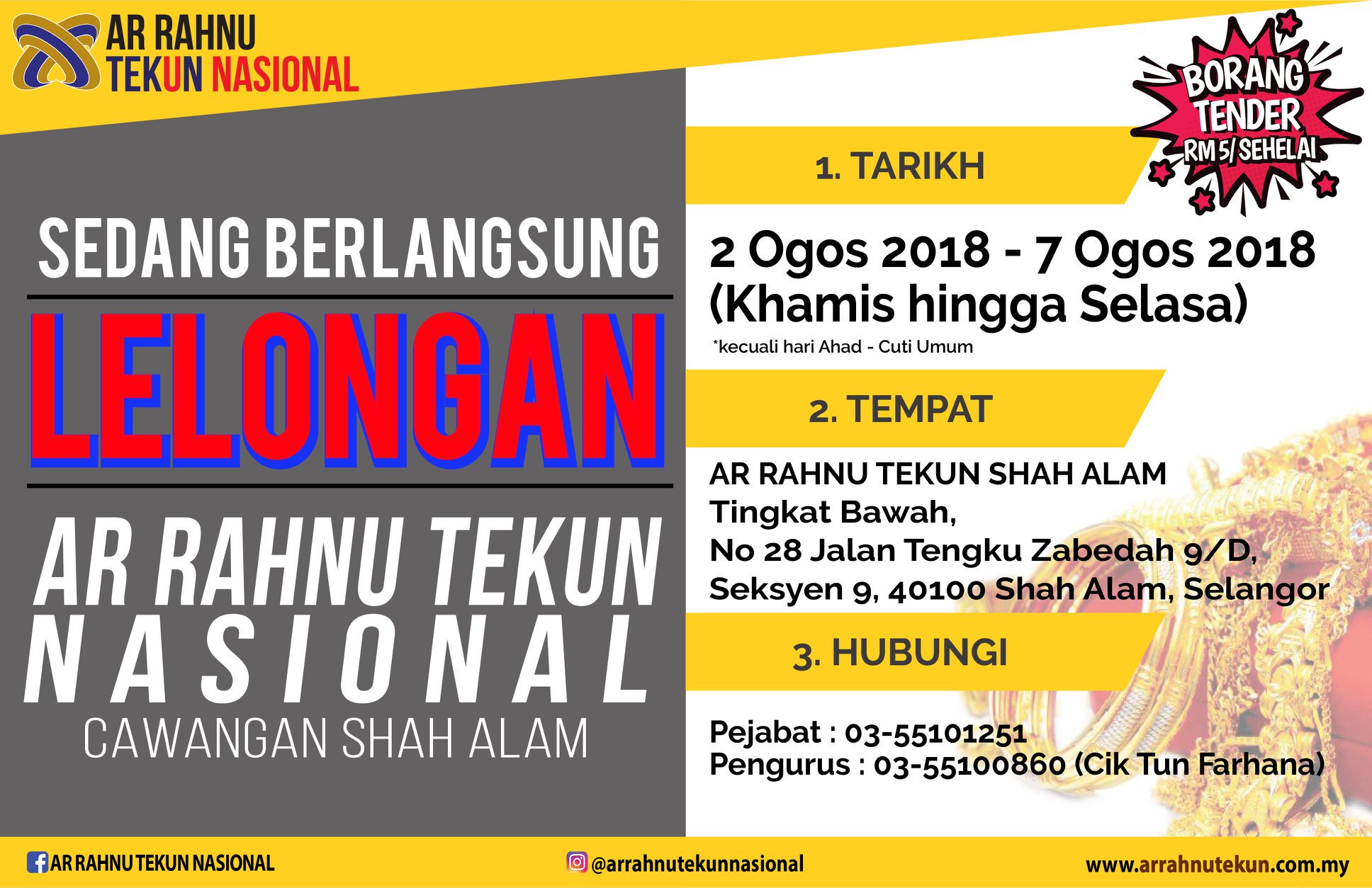 Tekun Nasional On Twitter Kunjungi Cawangan Ar Rahnu Tekun Yang Terletak Berdekatan Dengan Cash Converter Shah Alam Seksyen 9 Lelongan Berlangsung Sehingga 7 Ogos 2018 Khamis Hingga Selasa Dan Hari Sabtu Kami