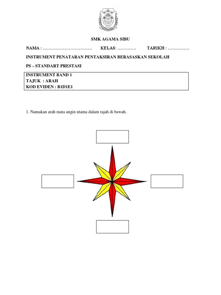 1 Namakan Arah Mata Angin Utama Dalam Rajah Di Bawah
