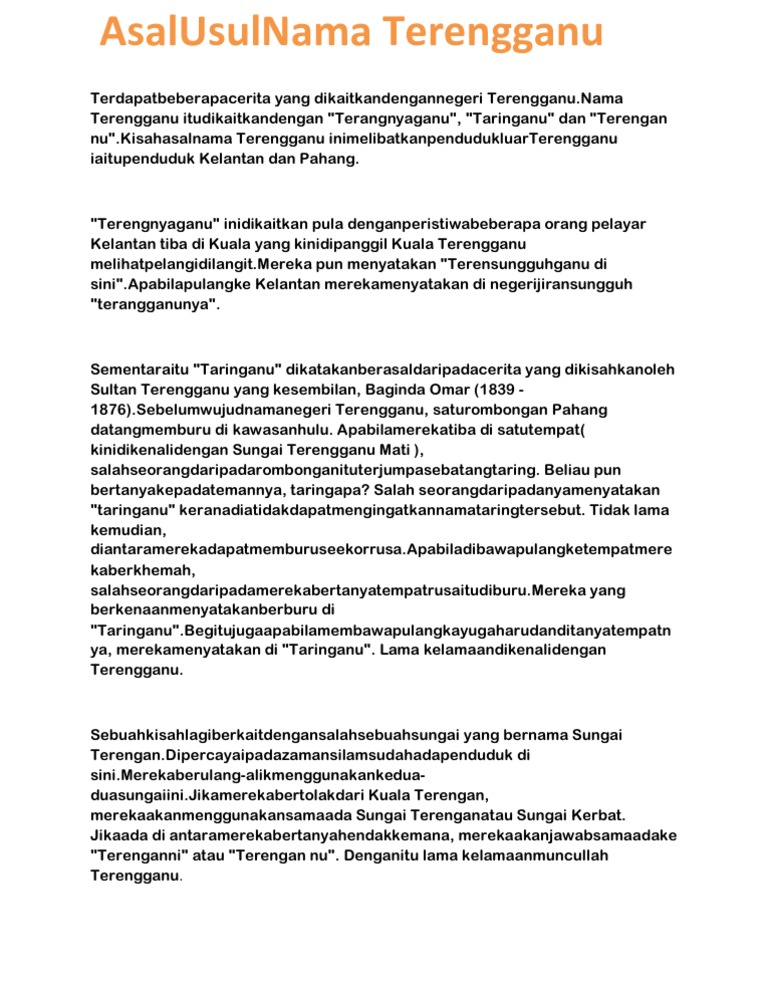 Diari Seorang Hammba Allah Asal Usul Nama Negeri Terengganu