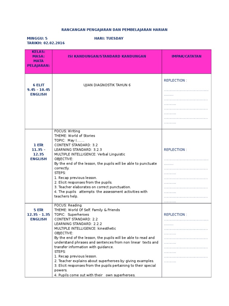 Lesson Plan 2013 Week 1 English Language Lesson Plan