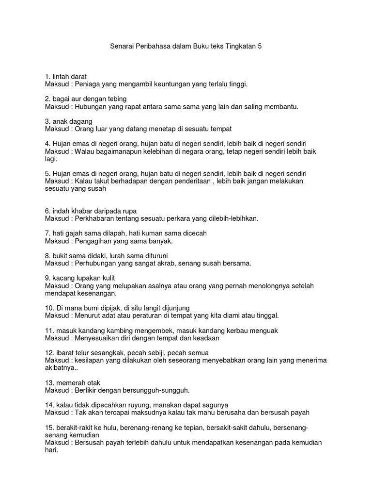 Senarai Peribahasa Dalam Buku Teks Tingkatan 5 Docx