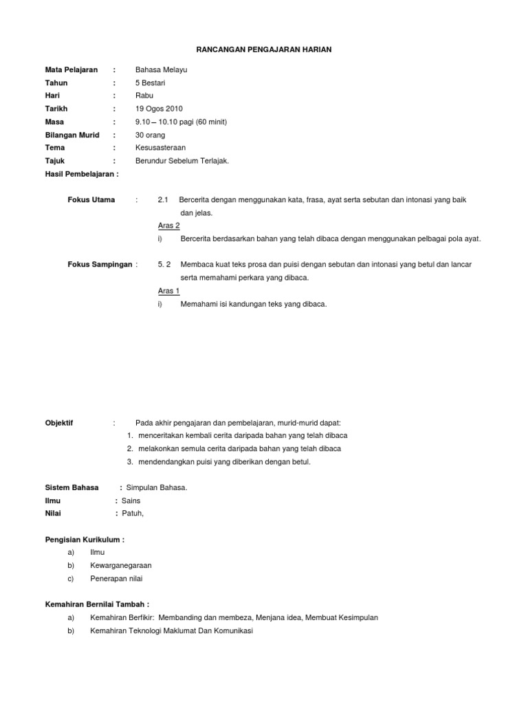 Rancangan Pengajaran Slot Bahasa Malaysia Prasekolah Nzrg Lovefreestr Ru