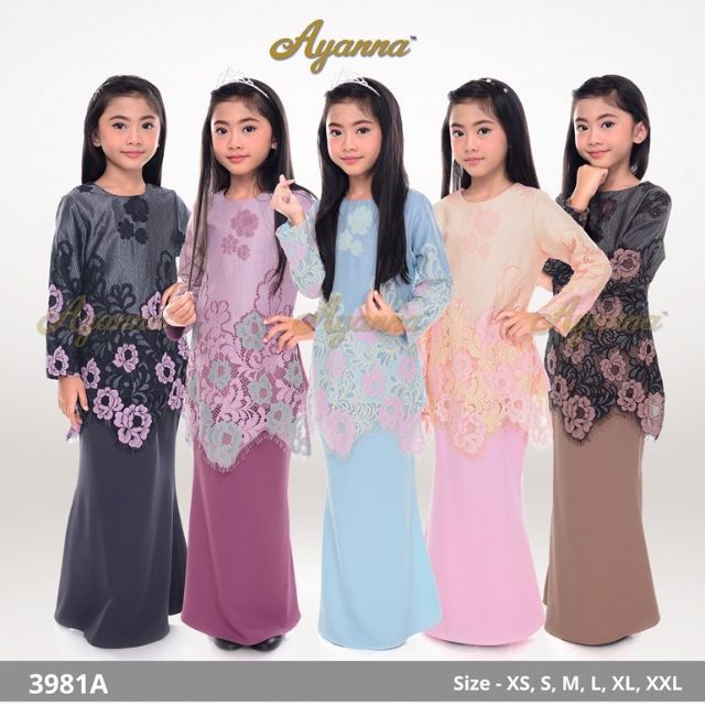 3983a 3 Anak Baju Kurung Lace Kanak Kanak Saiz Xs Xxl Shopee Malaysia