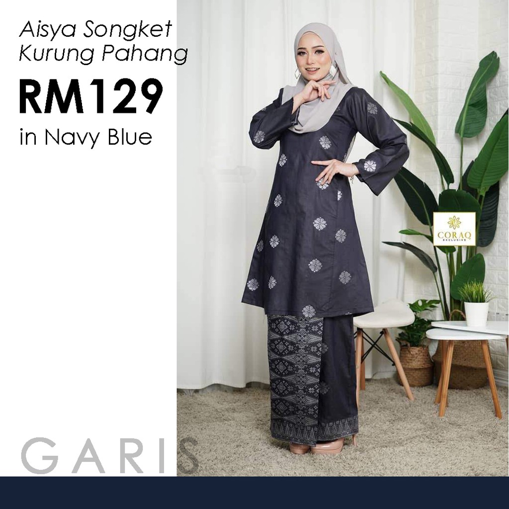 Aisya Songket Kurung Pahang In Navy Blue Shopee Malaysia
