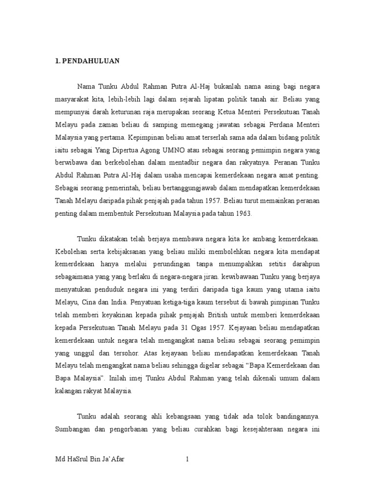 Latar Belakang Tunku Abdul Rahman Docx Latar Belakang Tunku Abdul Rahman Almarhum Tunku Abdul Rahman Putra Al Haj Ibni Almarhum Sultan Abdul Hamid Course Hero