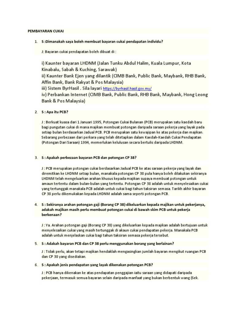 Lhdn Henti Terima Bayaran Pcb Secara Tunai Cek