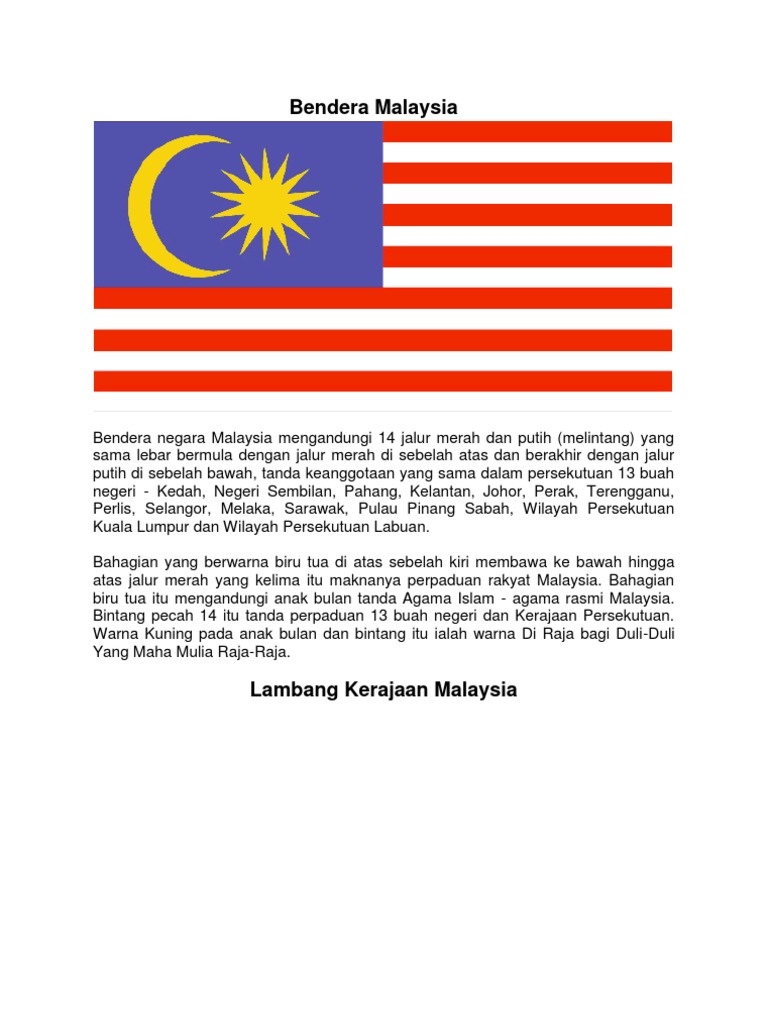 Bendera Malaysia Bendera Negara Malaysia Mengandungi 14 Jalur Merah Dan Putih Melintang