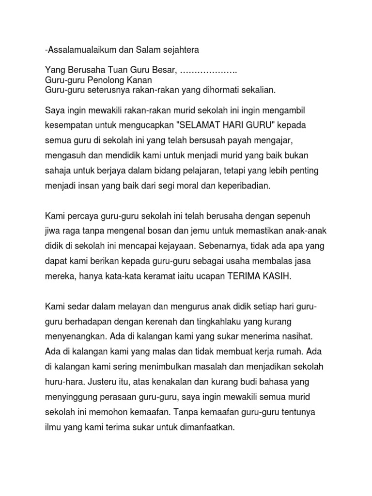 Ucapan Muird Hari Guru