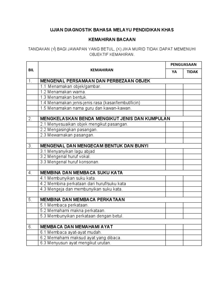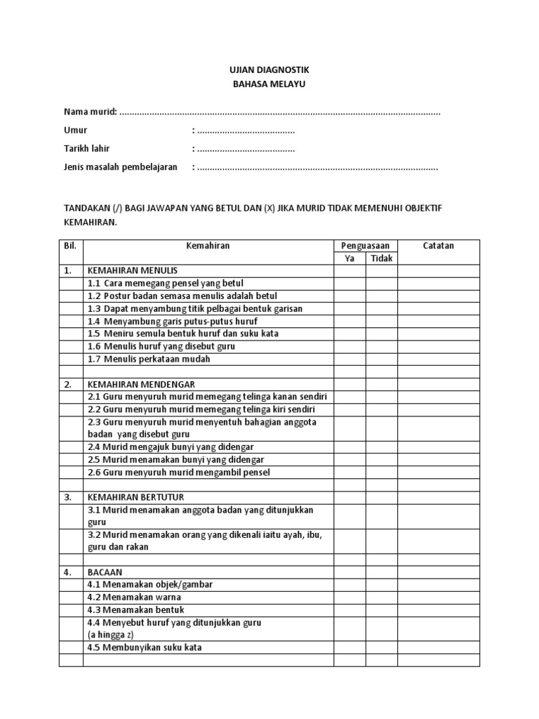 Ujian Diagnostik Bahasa Melayu Pendidikan Khas Pdf Document