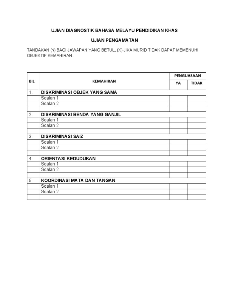 Ujian Diagnostik Bahasa Melayu Pendidikan Khas Pengamatan