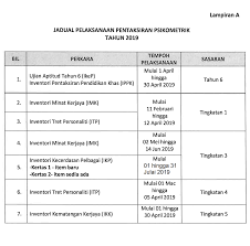 Kaunselor Nurhaiza Che Mat Jadual Tarikh Perlaksanaan Psikometrik Tahun 2019