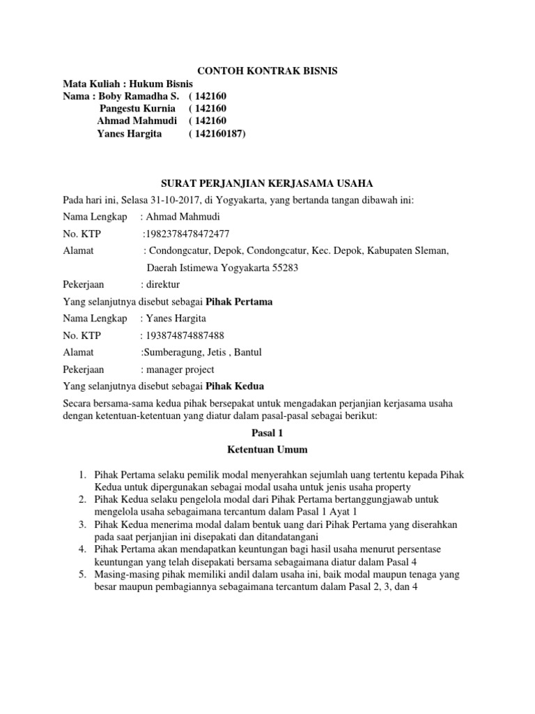 Contoh Kontrak Bisnis