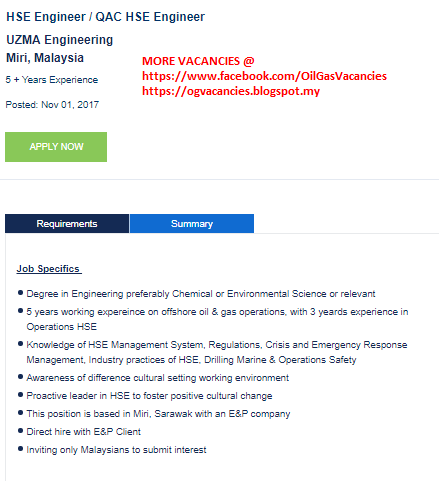 Oil Gas Vacancies Hse Engineer Qac Hse Engineer Uzma Engineering Miri