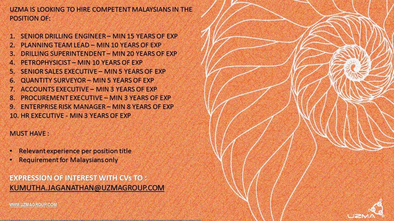 Oil Gas Vacancies Fishing Tool Supervisor Uzma Engineering Kuala Lumpur